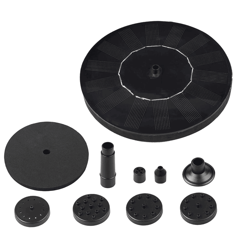 - Power Consumption: Solar panel power consumption: 10V – 2.5W; Pump power: 7V – 2.5W