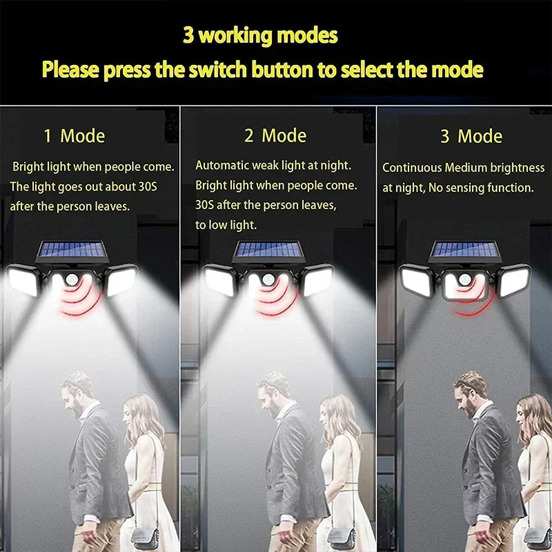 3. Versatile Lighting Modes: Choose from three smart lighting modes to suit your needs—Security Mode, Intelligent Brightness Control, and Constant Lighting.