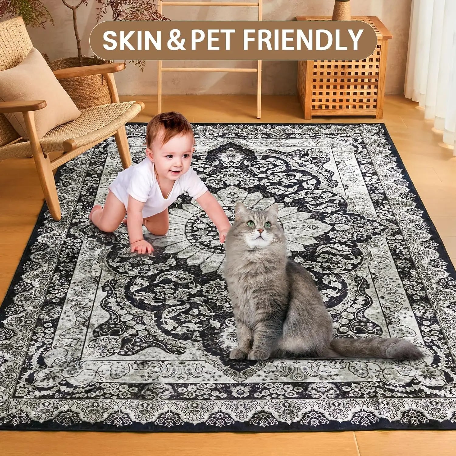The Noir Luxe Washable Boho Rug combines striking design with effortless functionality, bringing elegance and practicality to your home.