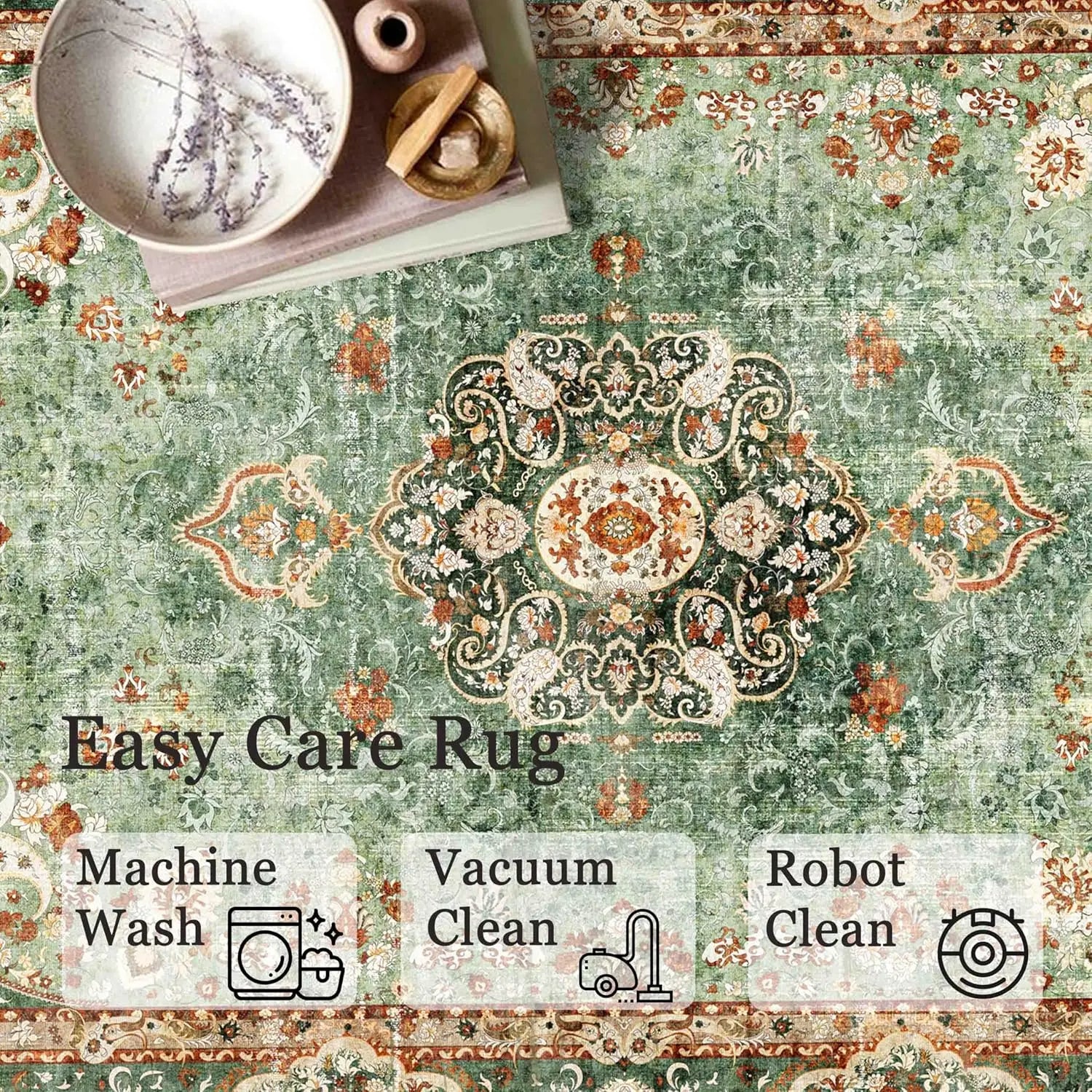 - Elegant Floral Design: A harmonious blend of sage green, rust, and ivory tones with intricate detailing, perfect for both modern and classic interiors.
